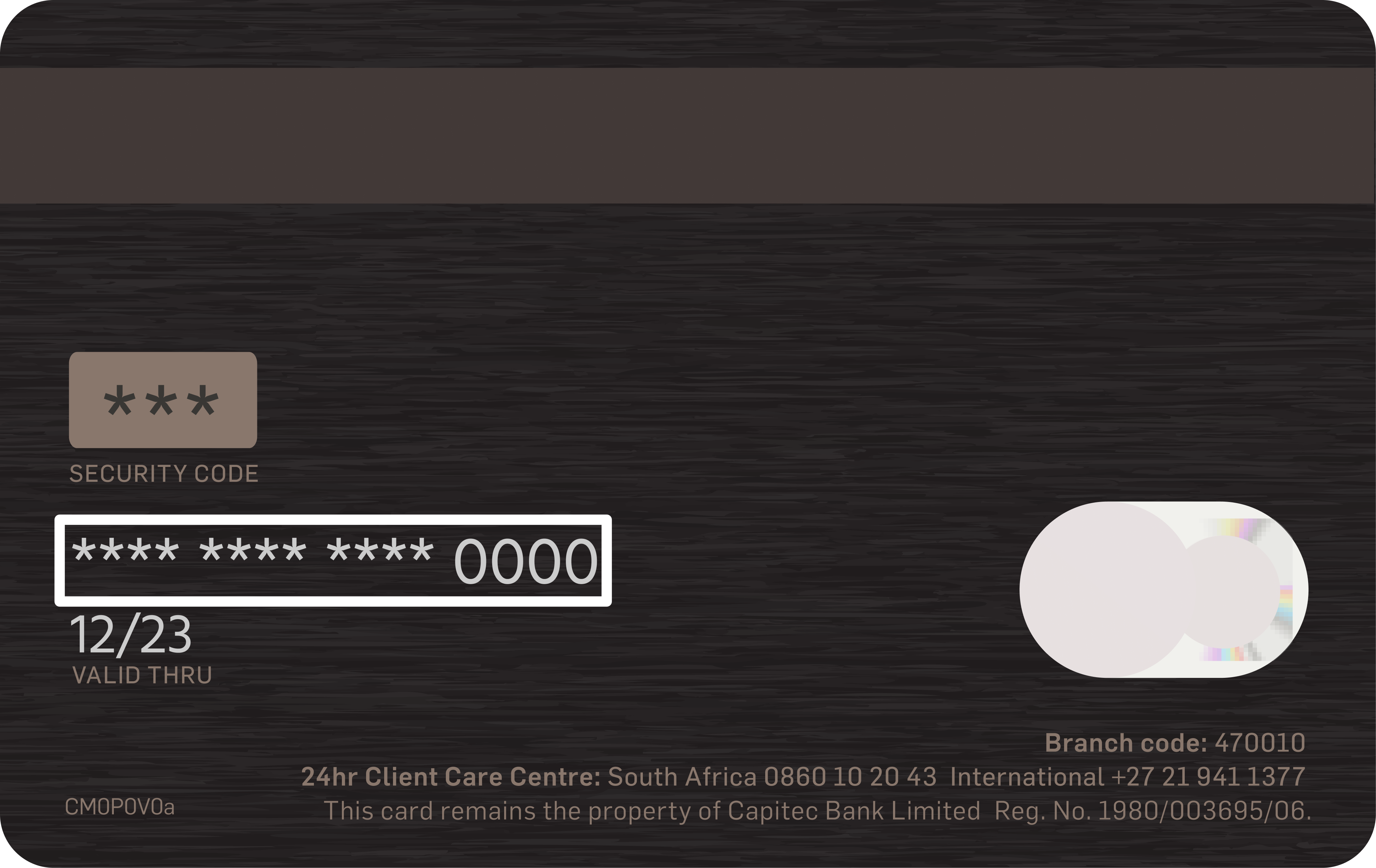Your card number is the 16 digit number on the back of your Capitec bank card.